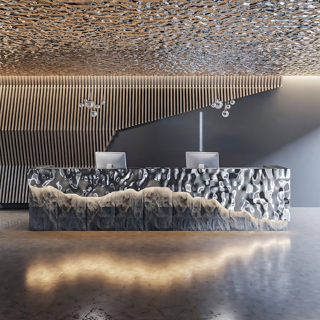 Rectangular Stainless Steel Reception Desk with Wave Shape JDT-2164 Features a unique wave - shaped design, breaking away from the ordinary. With its simple and modern style, it is suitable for various scenarios such as company front - desk...