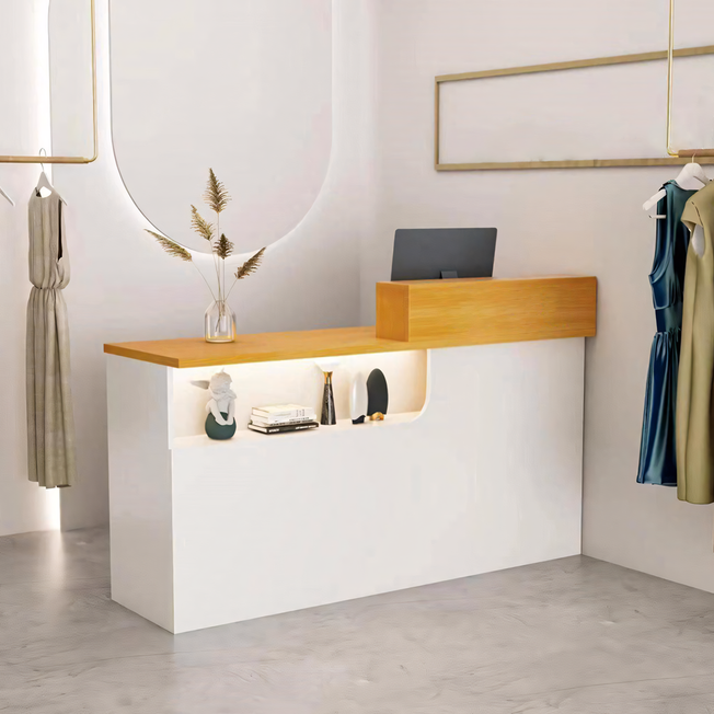 Simple Salon Office Shop Store Institution Reception Desk JDT-1086 Experience excellence in reception with our reception desk, showcasing a stylish cashier's desk design. Meticulously crafted to redefine the aesthetics of your space, this desk combines functionality with a touch...