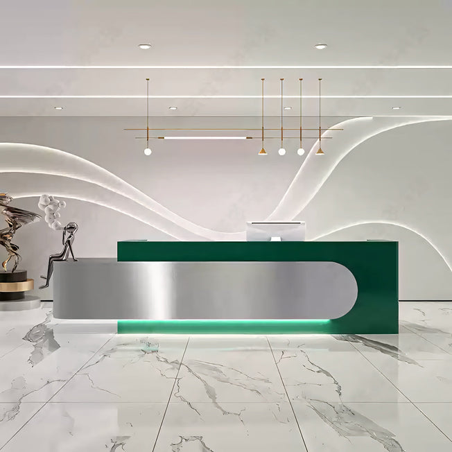 Large Sized Modern and Popular Stainless Steel Front Desk Reception Desk JDT-7276 Are you looking for a perfect reception desk for your enterprise? Here is our large-sized modern and popular stainless steel reception desk. It has a spacious counter which can be...
