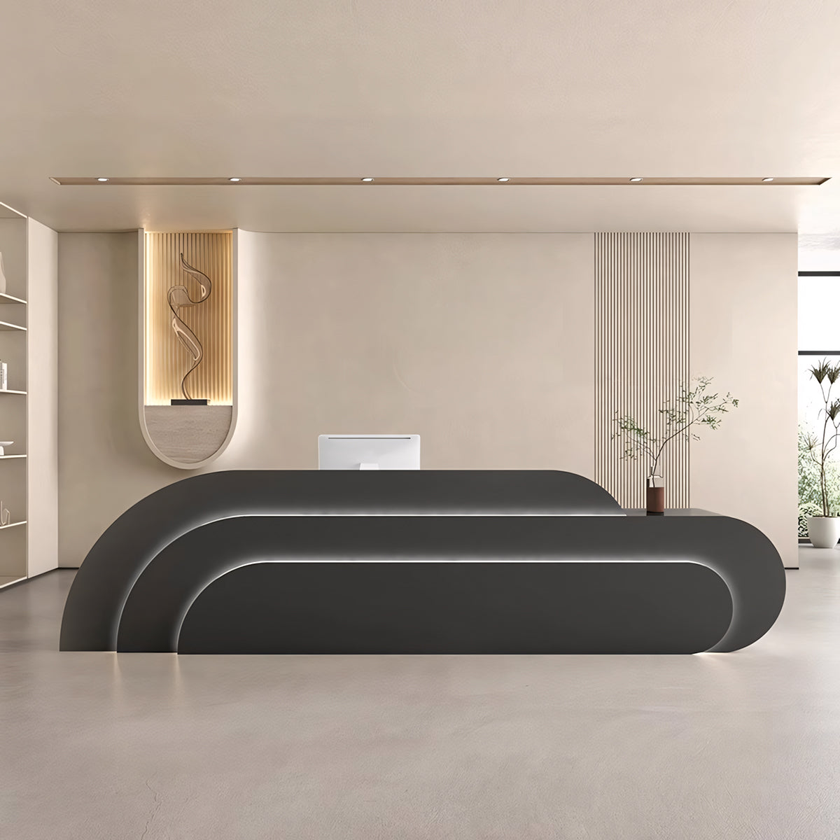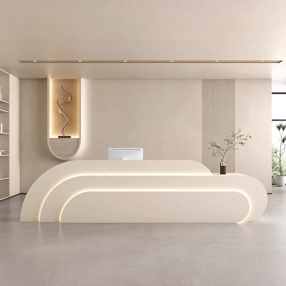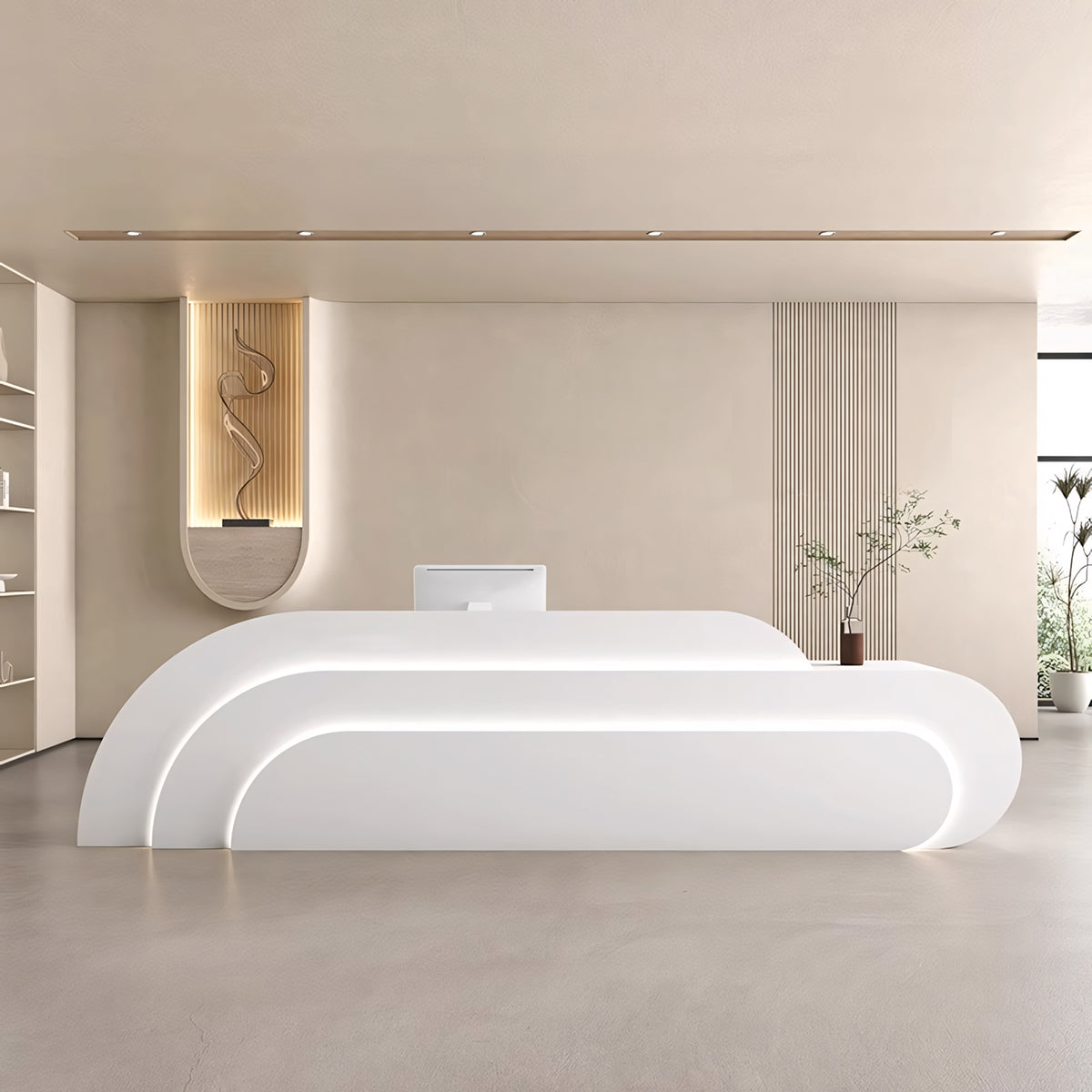 The reception desk is creative and fashionable. With the smooth arc-shaped design and luminous light strips, it perfectly combines aesthetics and practicality. It can be used as a cashier counter or a reception desk.