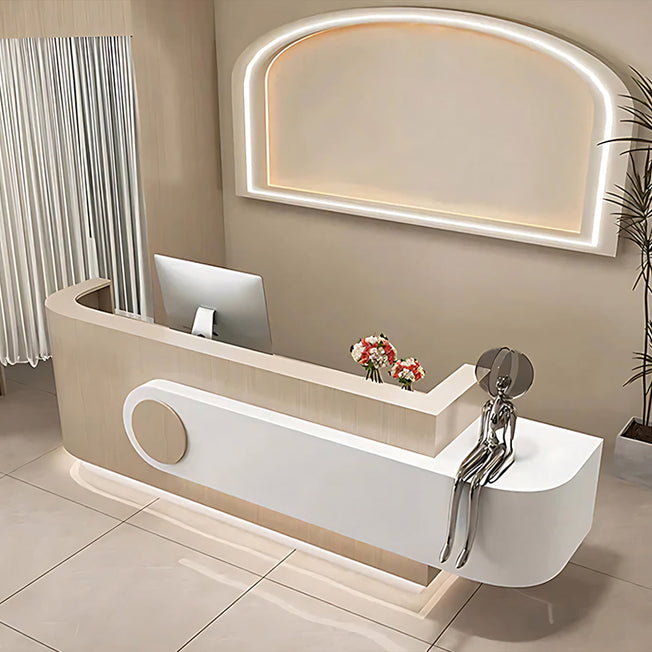 Beauty Salon Lacquered Curved l-Shaped Corner Cashier Desk JDT-7136 Are you still worried about not being able to find a suitable reception desk for your store or company's reception area? Look here! It is made of high - quality...