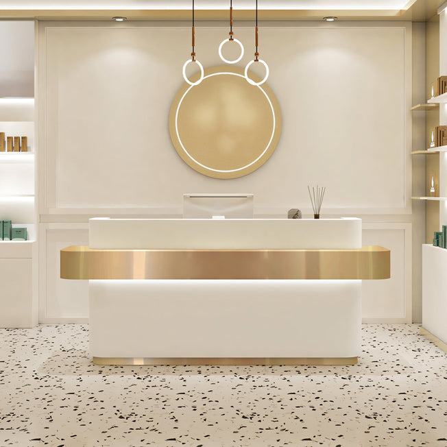 Light Luxury Stylish Stainless Steel Reception Desk JDT-1018 This reception desk combines modern minimalist design with high-quality stainless steel, bringing a unique touch of luxury to your beauty salon, clothing store, and medical aesthetics institution. Its exquisite appearance...