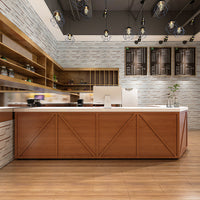 | Discover our Vintage - style Bar Reception Desk, a harmonious blend of classic allure and practicality. Its geometric patterns and angular lines create a timeless silhouette, infusing any space with nostalgia and sophistication.Perfect for bars and cafes, this desk features an artfully paneled facade, exuding understated luxury. | |
