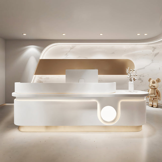 Arc Light Luxury Hotel Store Institution Reception Desk JDT-1016 Material Engineered Wood Weight 55-200kg Size L120*W60*H100cm L150*W60*H100cm L160*W60*H100cm L180*W60*H100cm L200*W60*H100cm L220*W60*H100cm L240*W60*H100cm L260*W60*H100cm L280*W60*H100cm L300*W60*H100cm L320*W60*H100cm L340*W60*H100cm L360*W60*H100cm L380*W60*H100cm L400*W60*H100cm Styles Fixed Style Assembly Required No Customize Yes Custom...