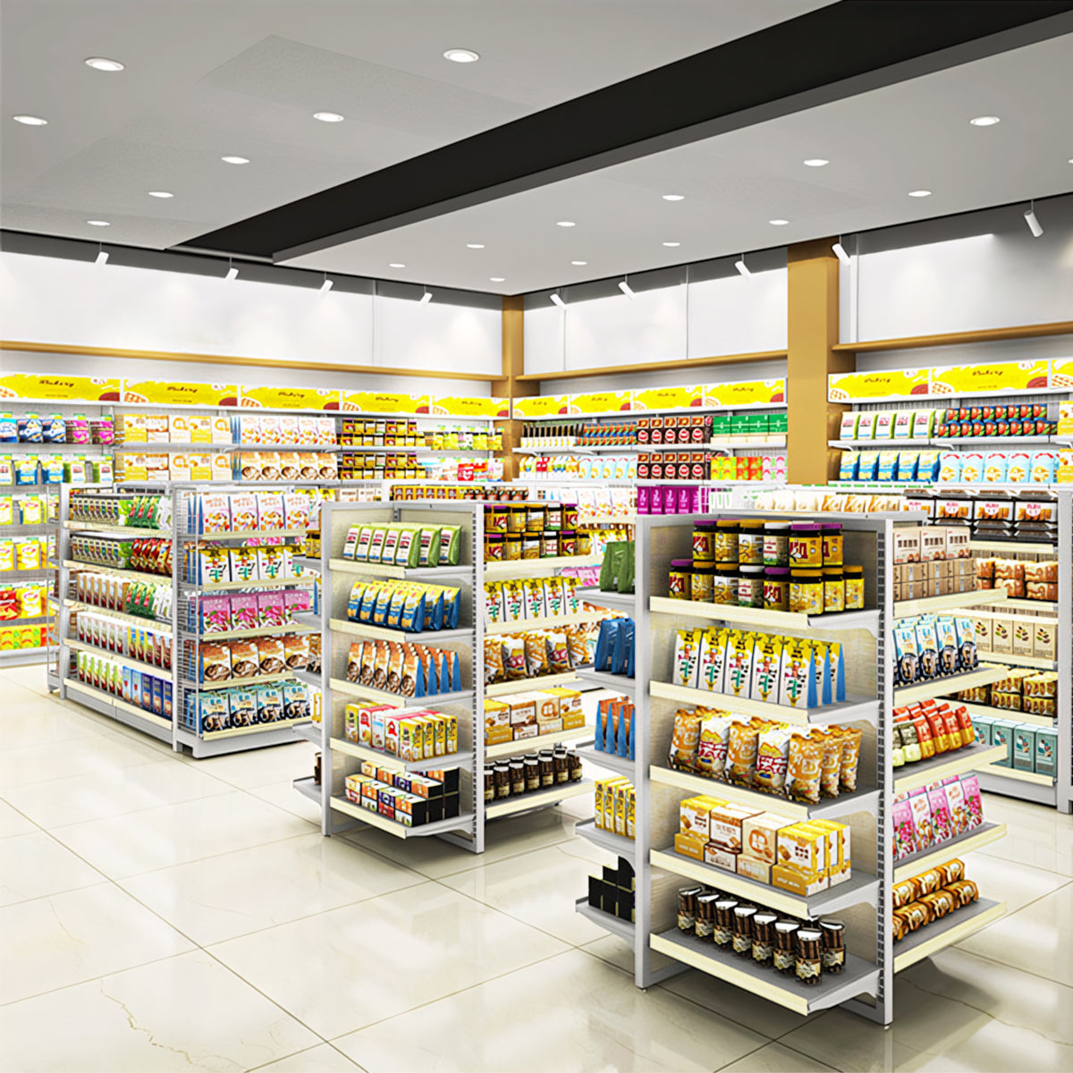 The shelves are divided and organized into categories,and the wide variety of goods are displayed neatly and cleanly,making it easy for customers to find their favorite products.