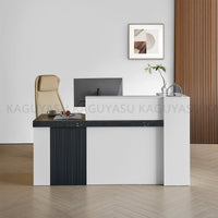 | This modern minimalist reception desk features a sleek and contemporary design, enhanced by LED lighting for a touch of sophistication. Suitable for various commercial spaces and office environments, it offers efficient reception services with a stylish flair. | |