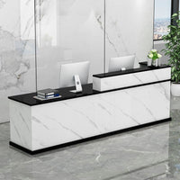 | This sleek reception desk offers multiple color options to suit various settings and preferences. With its spacious countertop and practical storage solutions, it helps keep your workspace organized. Ideal for offices or commercial spaces, it adds a touch of modern style and functionality. |